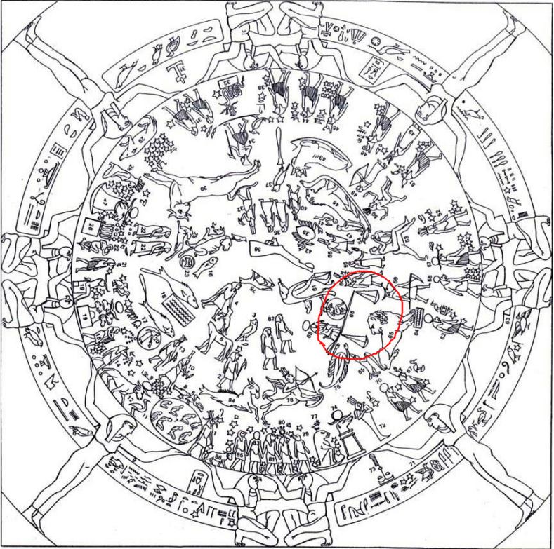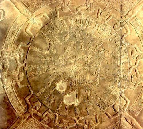 Veamos ahora el famoso techo de la pronaos, del zodíaco de Dendera. Según el físico y matemático francés Joseph Fourier, su creación tuvo lugar en el 2.500 a. C.