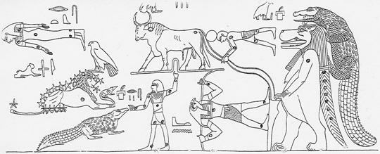 Me sorprendieron estos dos pasajes porque utilizaba nombres concretos, Hipopótamo y Cocodrilo. Esto me recordó inmediatamente a las constelaciones egipcias, en las cuales el Hipopótamo y el Cocodrilo están uno al lado del otro.