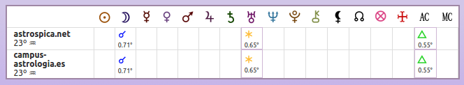 AstroSpica.net vuelve a situarse en el grado 23º de Acuario, otra vez sobre mi Luna y sobre el grado de Campus Astrología, quedando de este modo ambos dominios bien vinculados entre ellos como garante de mi MC.