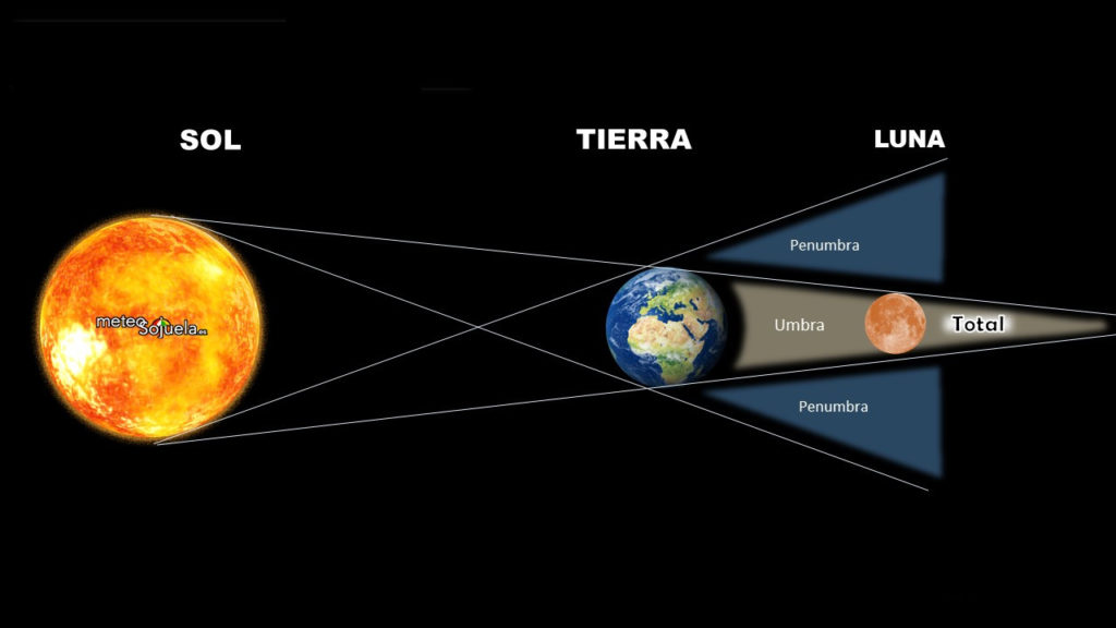 La Tierra proyecta su sombra sobre el cuerpo lunar. Al observar este evento, se puede apreciar como progresivamente el cuerpo lunar se va borrando hasta quedar a oscuras.