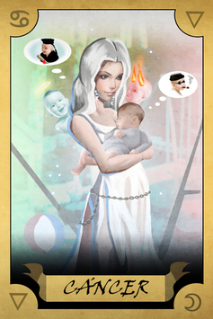 Con Luna en Cáncer, la extremada sensibilidad hacia las opiniones y reacciones de los otros, puede llevarlos a imaginarse que son despreciados, aún cuando no sea cierto. Como consecuencia de ello, tienden a apartarse y a encerrarse en sí mismos. Afligida, habrá excesiva inestabilidad emocional tendencia a sofocar a los hijos con el cariño, al punto de querer dominar sus vidas.