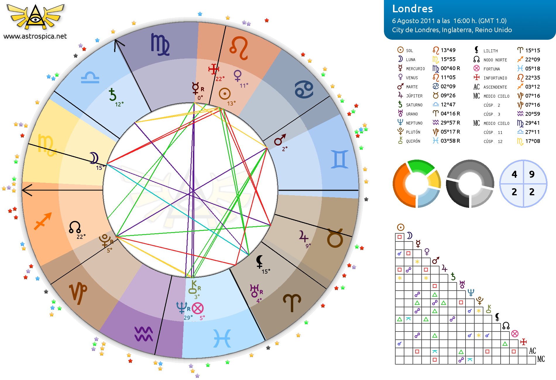 3. El 6 de agosto de 2011, en Inglaterra, Mark Duggan, un joven de raza negra, fue víctima de un asesinato con agravante racista por parte de la Policía Metropolitana. Acto seguido, el mismo día, comenzó una cadena de manifestaciones tremendamente violentas que se mantendría hasta el 12 de agosto. La carta natal de ese mismo día nos indica que Marte, dispositor de Urano en Aries, acababa de entrar en Cáncer en plena luna en Escorpio (llamada por muchos “la luna de los crímenes”). Esto es interpretado a través de 5 puntos: